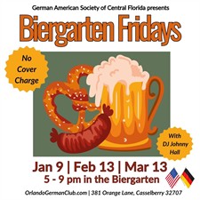 No cover charge. Free parking. Bier, Brats, and Pretzels available for purchase.