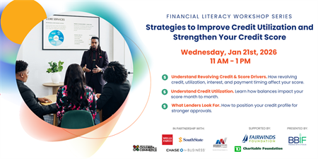 Join BBIF for the next session in our Financial Literacy Workshop Series, a virtual workshop focused on improving credit utilization, strengthening your credit score, and preparing for future financing. Learn how revolving credit works, what impacts your score month to month, and what lenders evaluate when making approval decisions."
